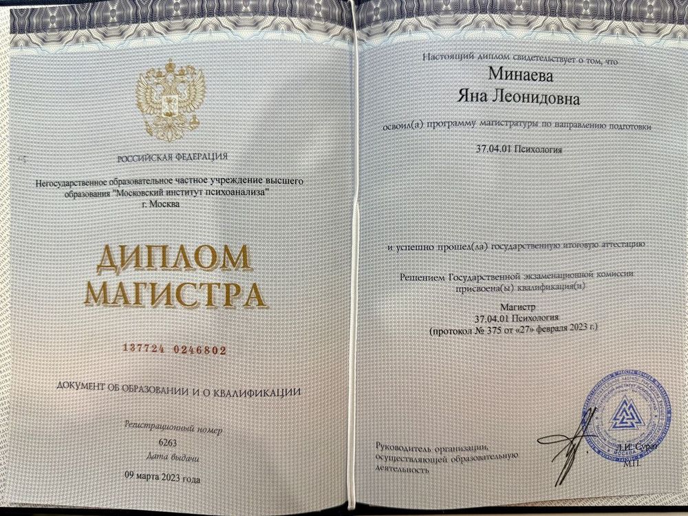 Моё образование — это отражение моей ответственности перед каждым, кто доверяет мне свои чувства и переживания.